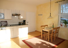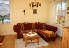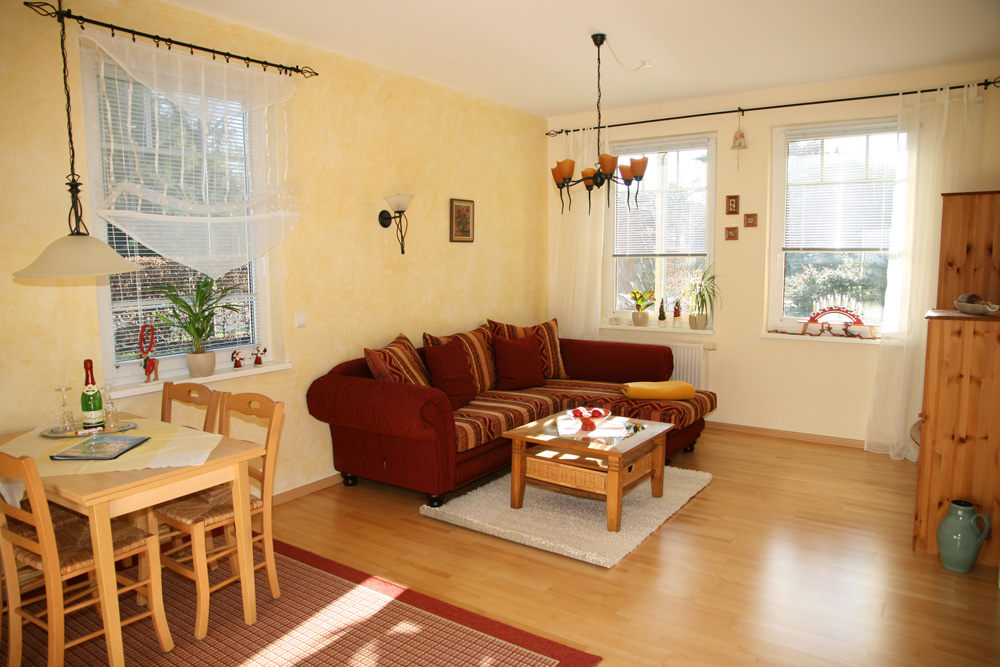 Austattung: - Hochwertige Einbauküche: (Cerankochfeld/Kühlschrank mit Gefrierfach/Mikrowelle/Geschirrspülautomat/Wasserkocher/Toaster/Kaffeemaschine) - Ess- und Couchtisch - Fernseher mit digitalem Satellitenempfänger + Digitalradio, DVD/CD-Player- Bad mit Dusche, WC, Fön und Handtuchtrockner - Terrassenmöbel aus Hartholz fürs Frühstück draußen - Eck-Couch zum Ausziehen (als Aufbettungsmöglichkeit) - getrennte Wohn- und Schlafräume |